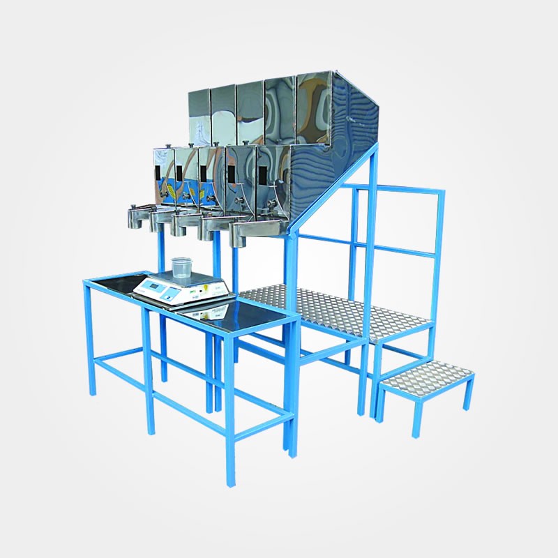 Características: O Silo Dosador foi desenvolvido com um sistema de alimentação e dosagem de compósitos granulados, para injeção de solas de calçados. Com fundo inclinado, para garantir a vazão do produto, contém banddeja móvel e sistema de pesagem, possibiilitando agilidade e precisão na dosagem dos diferentes componentes. Silo todos em aço inoxidável, apoiado sobre estrutura tubular pintada. Escadas e acessos com guarda-corpo, para abastecimento do silo.