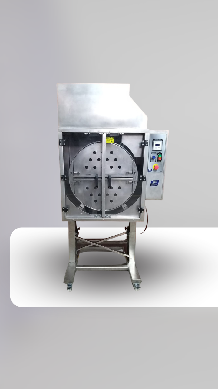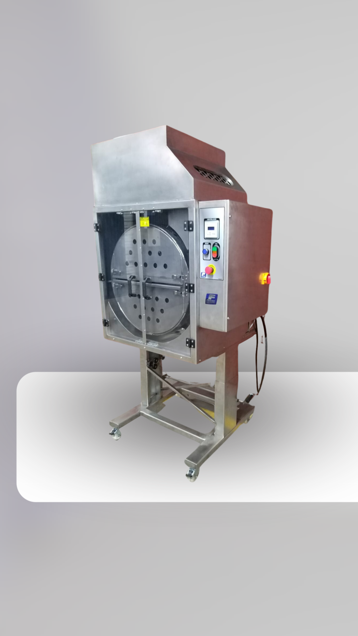 Descrição: A Secadora de Solas foi desenvolvida para a secagem do solado, após o processo de lavagem e enxágüe. Conta com sistema de aquecimento, ventilação forçada e cesto girante, para secagem das solas. Máquina construída em aço inox, conta com sistema de ajuste de altura, permitindo acesso ergonômico e seguro do operador à área de trabalho. Equipamento de acordo com exigências da norma NR-12, contando com Laudo e Manual de Operação e Manutenção Segura.