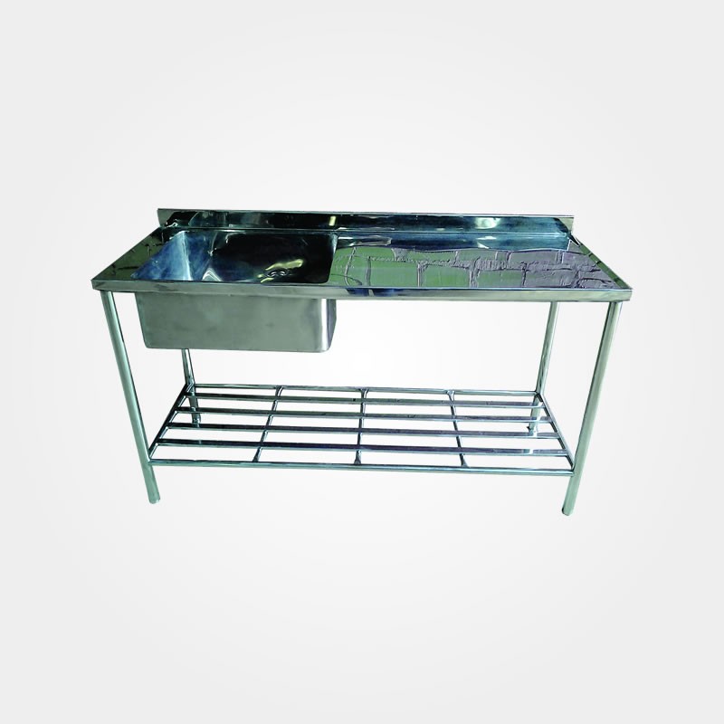 Mesa inox com cubas produzidas sob-medida em aço inox.
