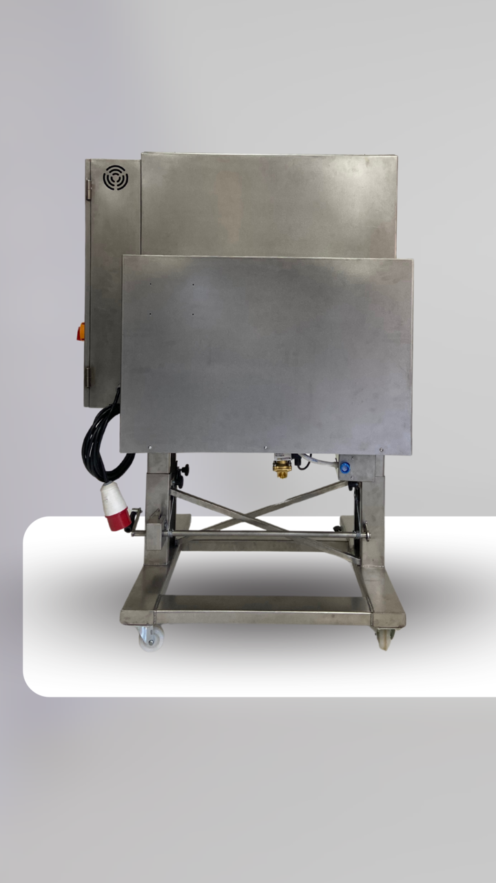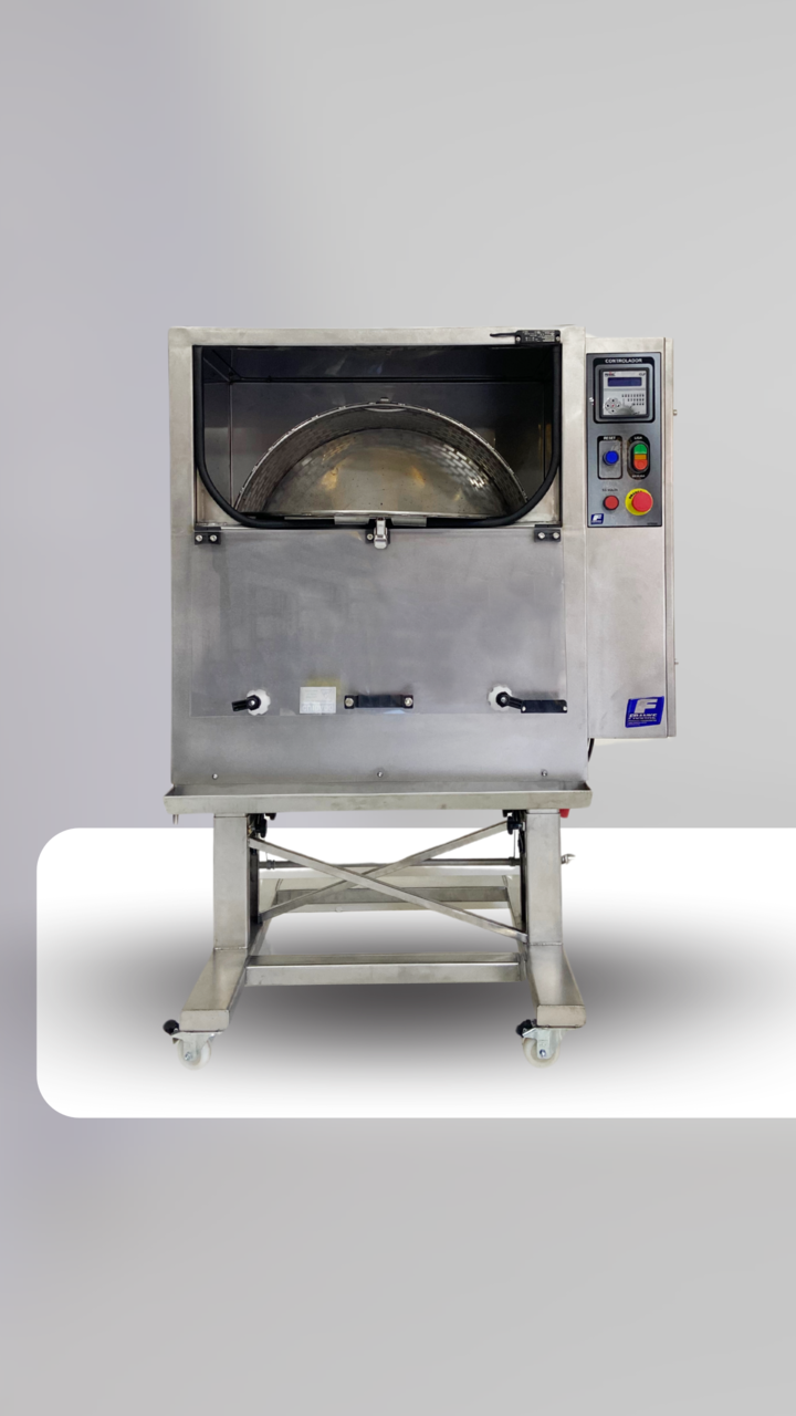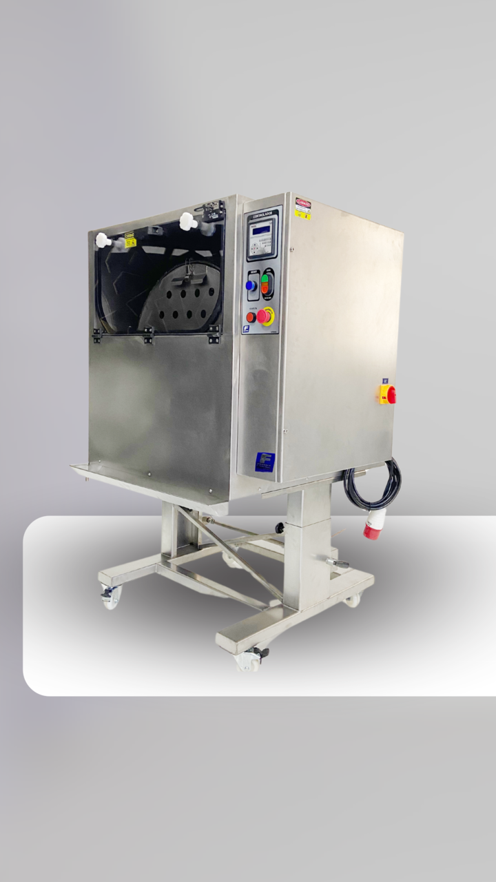 Descrição: A Lavadora de Solas foi desenvolvida para lavagem e remoção de desmoldante, utilizado no processo de injeção do solado, bem como demais contaminantes existentes. Elimina o uso de solventes para limpeza de solas, utilizando mistura a base de água e detergentes. Possui tanque de lavagem com aquecimento automatizado da calda por resistência elétrica. Máquina construída em aço inox, conta com sistema de ajuste de altura, permitindo acesso ergonômico e seguro do operador à área de trabalho. Equipamento de acordo com exigências da norma NR-12, contando com Laudo e Manual de Operação e Manutenção Segura.